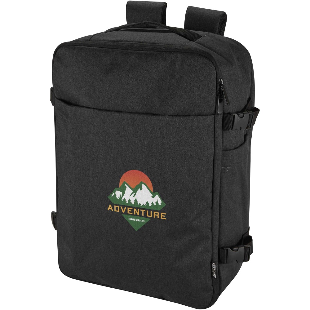 GRS tanúsítvánnyal rendelkező újrahasznosított poliészterből készült, RPET béléssel ellátott Libra hátizsák, melynek méretei megfelelnek a légitársaságok kézipoggyászra vonatkozó előírásainak. A táska egy dedikált, legfeljebb 17" méretű eszközök fogadására alkalmas laptoptartó rekesszel, valamint egy tágas főrésszel rendelkezik, amelyben rugalmas pántok és hálós elválasztók biztosítják a tartalom rendezettségét. Az elülső oldalon két nagyméretű cipzáras zseb található az alapvető kellékek gyors eléréséhez. A kényelmes viseletről és a praktikus szállításról légáteresztő hátpanel, bőröndre rögzíthető pánt, állítható vállpántok, mellkaspánt, valamint felső és oldalsó hordozófogantyúk gondoskodnak. Letisztult megjelenése és funkcionális kialakítása miatt kiváló választás üzleti utakhoz vagy irodán kívüli munkavégzéshez, miközben alapanyaga az öko-tudatosságot tükrözi.