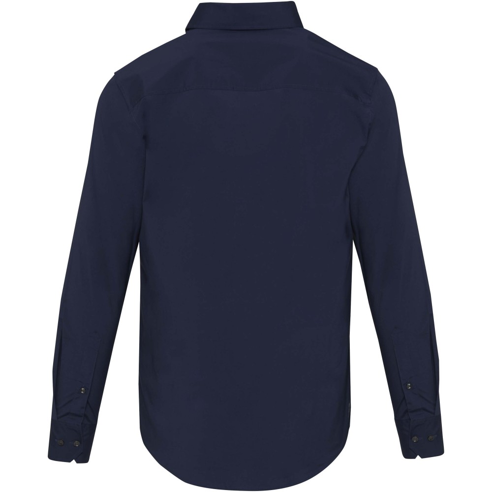 A Carnelian hosszúujjú férfi puplin ing modern kifinomultságot és fokozott kényelmet ötvöz. Kiváló minőségű, BCI-tanúsítvánnyal rendelkező pamutból készült, hozzáadott rugalmassággal, finom 30 denier kétrétegű sodrott szálszerkezettel, amely sima felületet, kivételes tartósságot és luxus érzetet biztosít. A könnyű puplin szövet friss, tiszta megjelenést kölcsönöz, míg a normál fazon mozgásszabadságot és egész napos kényelmet biztosít. Klasszikus, normál gallérral ellátott Carnelian ing sokoldalúan viselhető, mind üzleti, mind alkalmi viselethez. Puplin 97% BCI pamutból és 3% elasztánból, 133 g/m2.