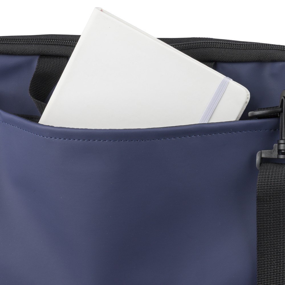 Újrahasznosított PU anyagból készült laptoptáska legfeljebb 15 hüvelykes készülékekhez, 4 mm vastag párnázással és 210D újrahasznosított béléssel. Elülső cipzáras zsebbel, hátoldali tépőzáras zsebbel, két rövid fogantyúval és állítható vállpánttal rendelkezik. A belső címkén újrahasznosított alapanyagra utaló logó található.