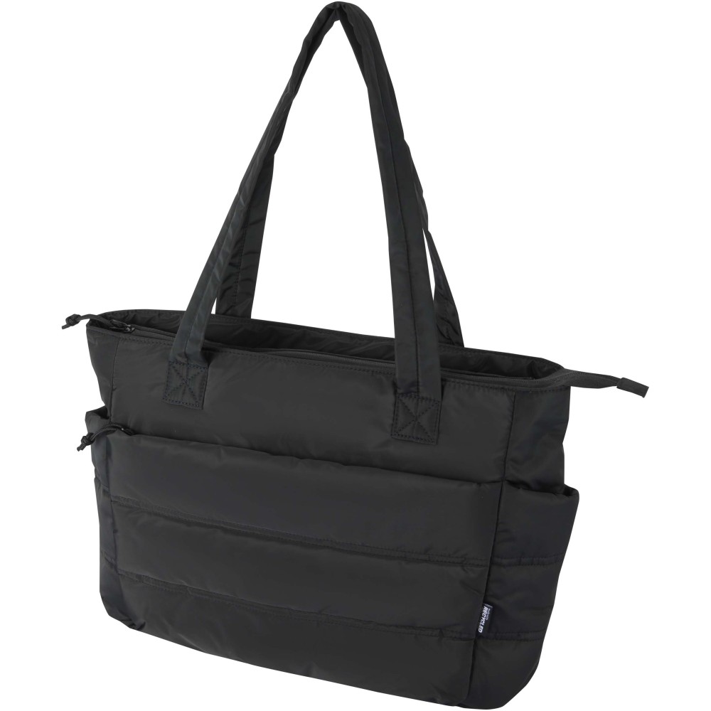 A Puffer 15,6" laptop válltáska GRS tanúsítvánnyal rendelkező újrahasznosított alapanyagokat ötvöz letisztult, modern megjelenéssel. A 18 literes űrtartalom mellett párnázott laptoprekesszel rendelkezik, amely legfeljebb 15,6 colos eszközök biztonságos tárolására alkalmas, valamint több belső és külső zsebbel, amelyekben kényelmesen elférnek jegyzetfüzetek, töltők, kulacs és egyéb mindennapi kiegészítők. A hosszú, párnázott fülek és a bőröndre rögzíthető pánt komfortos hordozást biztosítanak, míg a puffer stílusú párnázás egyszerre gondoskodik a védelemről és az elegáns megjelenésről. Könnyű és vízlepergető kialakításának köszönhetően ideális választás úton lévő szakemberek és diákok számára.