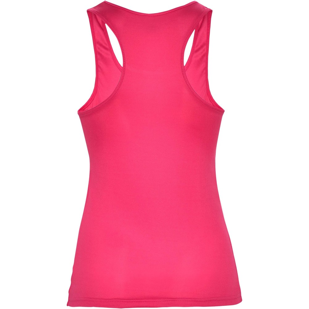 Technikai, légáteresztő, könnyen mosható és gyorsan száradó anyag. Bordázott karkivágások és nyakrész. Racerback kialakítás és oldalvarrások. Eltávolítható címke. 100% Polyester, 140 g/m2.