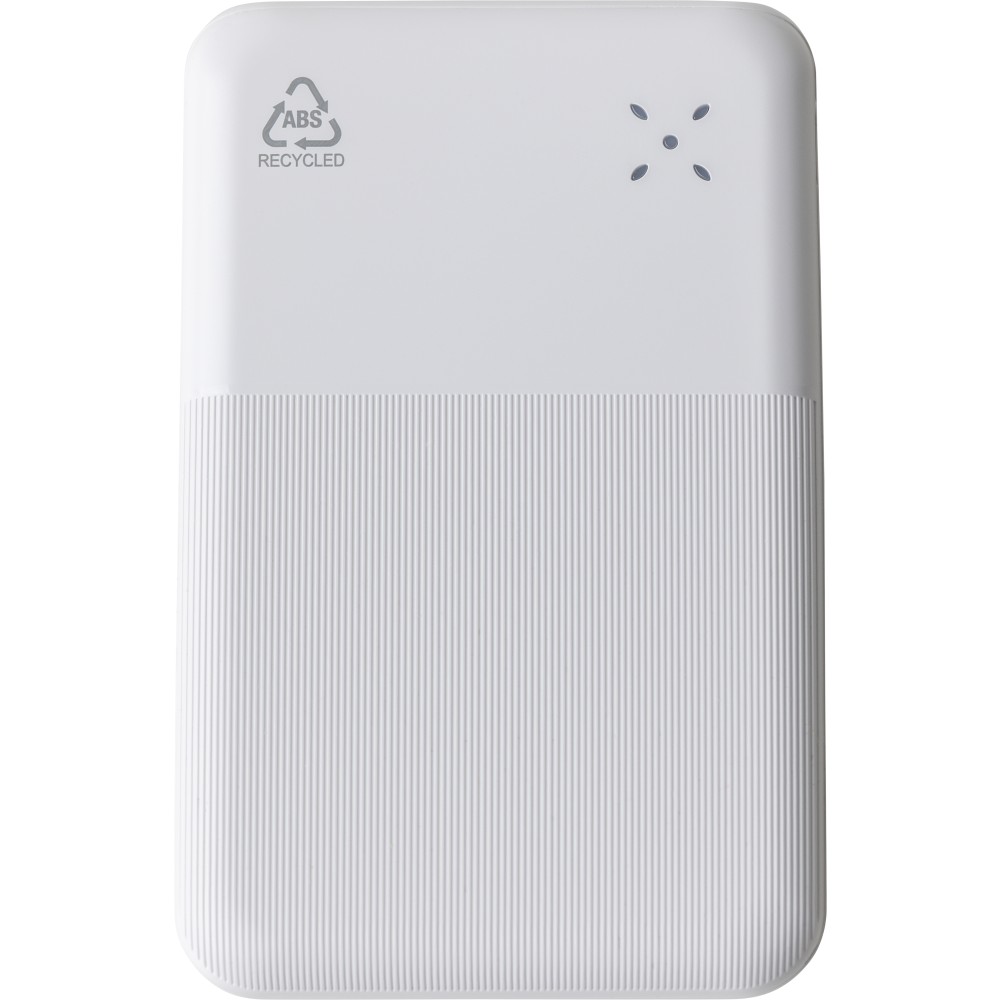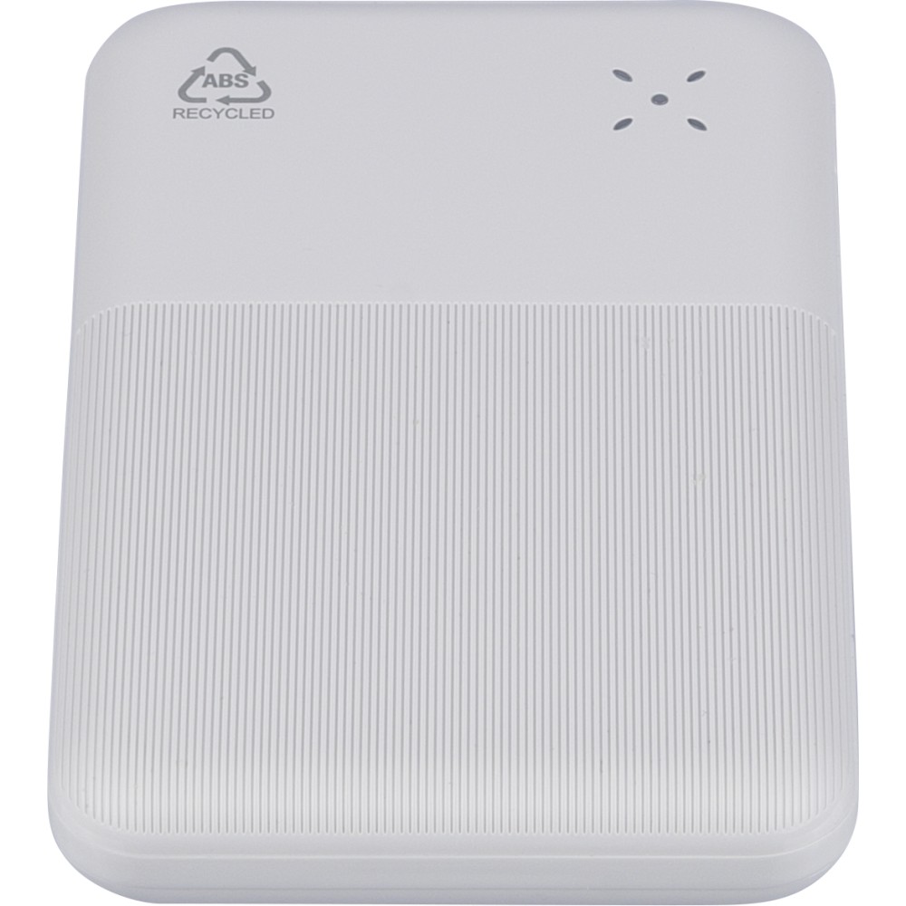 Újrahasznosított ABS anyagból készült powerbank 10 000 mAh kapacitással és 22,5 W gyors töltési teljesítménnyel. Type-C in/out és Type-A bemenettel, digitális kijelzővel, sima és texturált felülettel. Biztonsági védelmekkel ellátva. A hátoldalon gravírozott recycled (újrahasznosított) alapanyagra utaló logó található. Selyempapírral bélelt barna dobozba csomagolva.